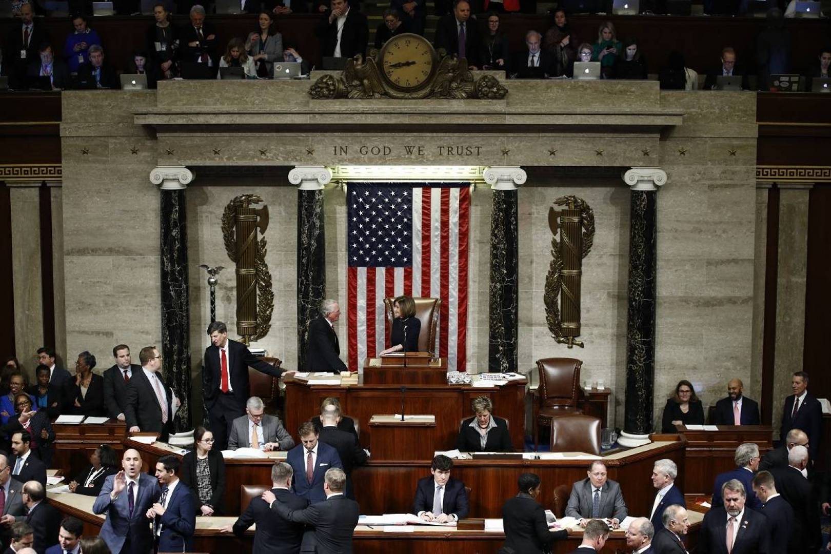 أغلقت السلطات الأمريكية مبنى الكونغرس إثر اشتباك بين أنصار الرئيس المنتهية ولايته دونالد ترامب وقوات الأمن خارجه، بحسب إعلام محلي. أعلنت رئيسة مجلس النواب الأمريكي نانسي بيلوسي في بيان لها، أن الكونغرس سيستأنف عملية التصديق على فوز المرشح الديمقراطي جو بايدن في وقت لاحق من ليلة الأربعاء. ندّد العديد من حلفاء الولايات المتّحدة الغربيين باقتحام متظاهرين من أنصار الرئيس الأمريكي المنتهية ولايته دونالد ترامب مقرّ الكونغرس في واشنطن، داعين إلى احترام نتيجة. فاز الحزب الديمقراطي الأمريكي، الأربعاء، بالأغلبية في الكونغرس بغرفتيه مجلس النواب ومجلس الشيوخ، بحسب إعلام محلي. مع استمرار سباقات الكونغرس، ستنضم إليه 141 امرأة على الأقل العام المقبل، محطماً الرقم.